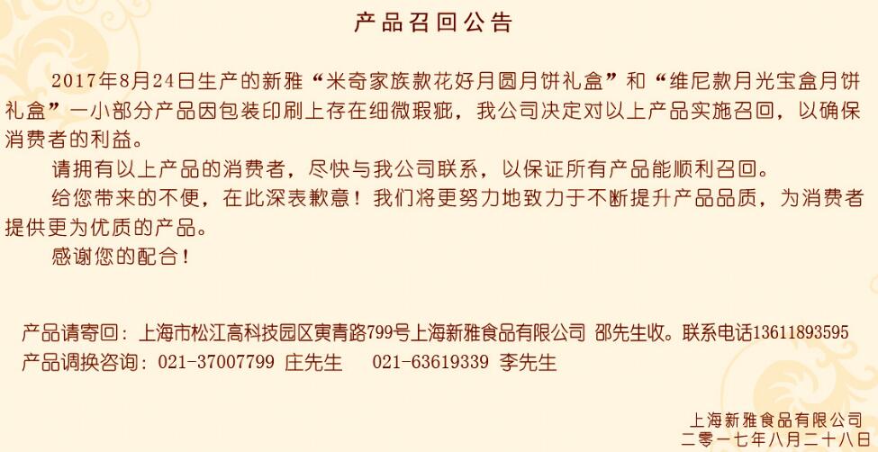 新雅产品召回公告